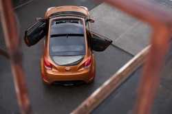 Masina se vrea una accesibila (va costa cam 17.000 de dolari in America), dar ofera multa inovatie pentru acesti bani. S-o luam cu inceputul. Veloster este un coupe/hatchback sportiv, care vine cu un design asimetric. Masina are o singura portiera pe partea soferului, dar doua portiere pe partea pasagerului. Portiera din spate este destul de ingusta si are clanta disimulata in montantul spate pentru a nu altera imaginea de coupe. Nu prea gasesti o asemenea asimetrie la alti constructori, iar Hyundai mizeaza pe acest element, in primul rand unul practic, pentru ca permite accesul lejer la locurile din spate.