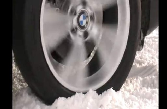 BMW ne arata diferentele de comportament, pe zapada, intre doua modele BMW X3, unul fiind echipat cu pneuri de vara, celalalt cu pneuri de iarna.