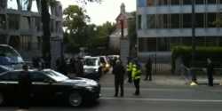 Dar masina asta, un veritabil Road Force One, are o slabiciune! Una simpla, la care nu prea s-a gandit nimeni. Aflat in vizita in Irlanda, Barack Obama a trecut printr-un moment amuzant (cred ca nu si pentru cei de la Secret Service..). Limuzina prezidentiala a ramas pur si simplu suspendata pe un damb, la iesirea din ambasada americana.