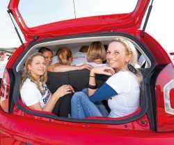 Au vrut sa vada cati oameni incap in acest model de clasa mini si au facut tot posibilul sa fie cat mai multi. Este adevarat ca s-au si orientat putin in sensul ca au luat un singur barbat pentru aceasta incercare. Barbat care sigur s-a simtit bine printre atatea femei. Ma rog, cat de bine te poti simti cand te contorsionezi la maxim…
