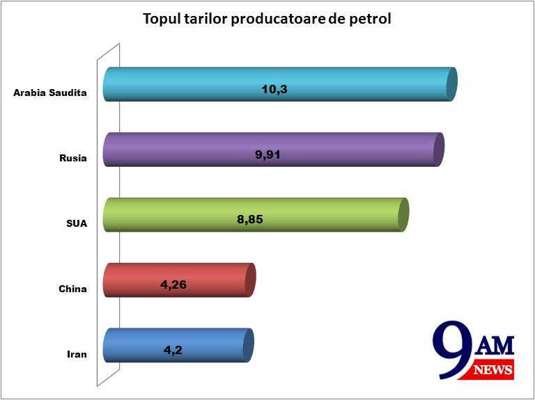 Iata mai jos primele 5 locuri ale clasamentului tarilor ce extrag cea mai mare cantitate de titei zilnic.