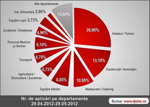 Din cele 19.480 de locuri de munca in strainatate, cele mai multe, respectiv 7.400, se concentreaza pe departamentul hoteluri/turism, potrivit portalului Tjobs.ro.