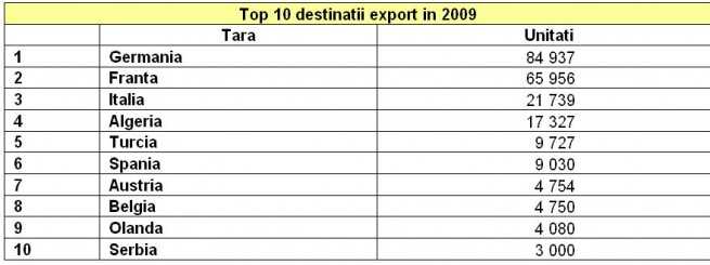 Anul trecut, Dacia a exportat 270.000 de masini, din care 200.000 in Europa Occidentala. Germania detine primul loc pentru exporturile Dacia cu 84.937 de unitati (+231%), urmata de Franta cu 65.956 unitati (+51%) si Italia cu 21.739 unitati (+152%).