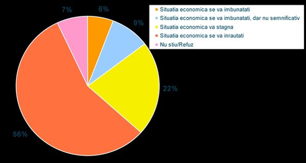 Mai mult de jumatate dintre participantii la studiu (56%) cred ca situatia economica se va inrautati si doar 15% sunt mai optimisti, considerand ca va exista o imbunatatire a acesteia.