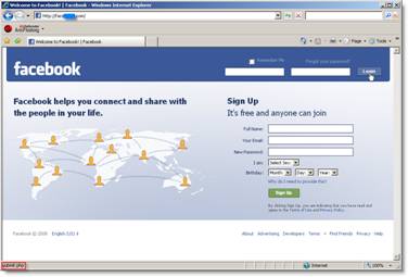 Site-ul fals, care reproduce extrem de bine site-ul original Facebook, colecteaza numele de utilizator si parola de acces la site, folosind un script PHP.
