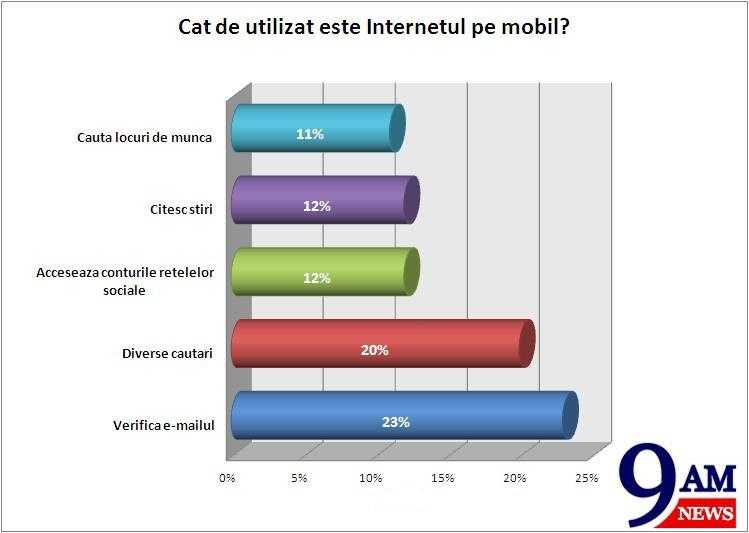 Astfel, conform unui studiu realizat de Bestjobs, s-a aflat ca 58% din participantii la sondaj detin posibilitatea de a-si accesa internetul de pe telefon. 31% din ei apeleaza la aceasta facilitate tot timpul, iar 56% cateodata.