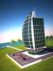 La celalalt pol, Burj al Arab are o inaltime de 321 de metri si este situat pe o insula artificiala, la 280 m departare de plaja Jumeirah, fiind singurul hotel de sapte stele.