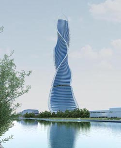 Etajele vor putea face o rotatie completa in trei ore, fiind miscate cu ajutorul unor motoare elctrice ce isi iau energie din panouri solare si turbine eoliene. Fiecare etaj va fi montat pe un nucleu ultra rezistent care va contine casa scarilor si liftul.