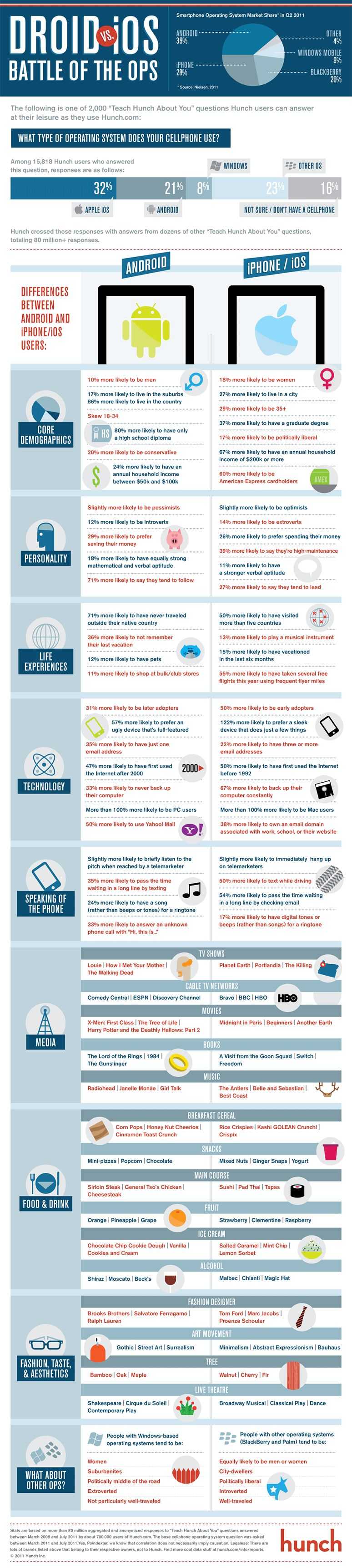 La polul opus, utilizatorii de iPhone/iOS sunt mai degraba liberali, au salarii mai mari, sunt perfect adaptati la ritmul alert al vietii in marile aglomerari urbane, isi organizeaza vacantele in locuri mai exotice si apreciaza mai mult micile placeri ale vietii.