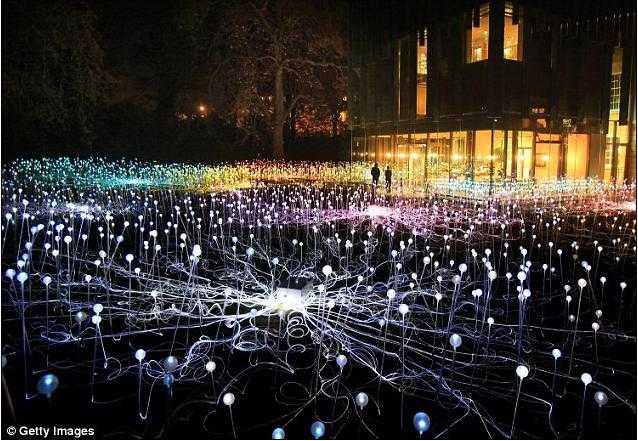 Expozitia cuprinde un labirint de 5.000 de becuri „plantate” in gradina muzeului. Ideea i-a venit artistului acum 20 de ani, in timp ce se afla intr-o calatorie in Australia. El a fost impresionat de cum se poate transforma destertul dupa ploaie.