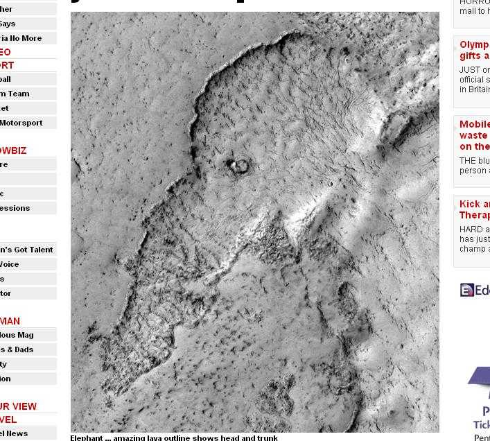 Ciudata formatiune pietroasa are conturul unui elefant si este, de fapt, o depunere de lava din zona cunoscuta sub numele de Elysium Planitia, scrie stirileprotv.ro.