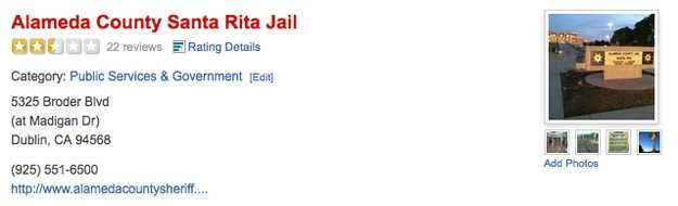 Alameda County Santa Rita Jail de exemplu are 22 de cronici si un punctaj de 2,5 stele din 5. Locatarii sai temporari s-au plans, printre altele, de lipsa de politete a temnitasilor si de mancare.