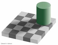 Probabil ca aceasta este iluzia cu cel mai puternic impact vizual. Patratele marcate cu literele A si B au aceeasi nuanta de gri. Daca vrei sa te convingi, deschide Photoshop si verifica folosind optiunea Eyedropper Tool.