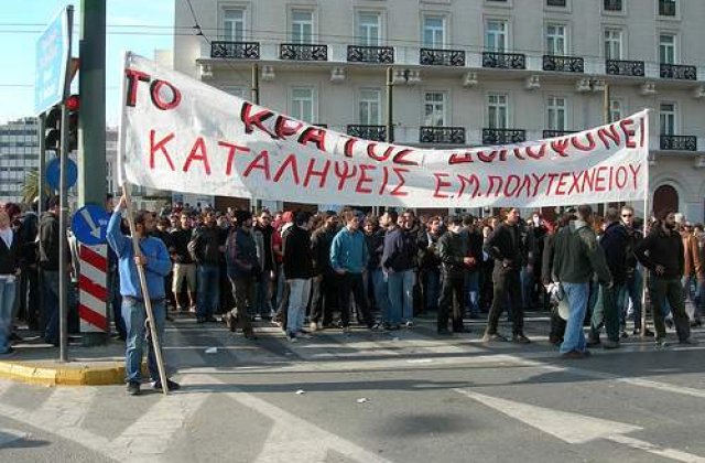 Manifestantii au continuat sa defileze spre centrul Atenei, in timp ce tinerii au ramas in fata scutierilor, in apropiere de Polithenica, loc unde au loc adesea ciocniri intre tineri si politie.