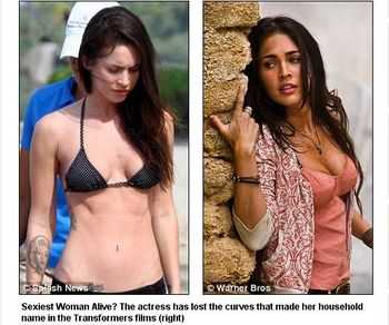 Megan Fox, a doua femeie din istorie, onorata sa fie incoronata "cea mai sexy femeie in viata" de catre revista FHM, doi ani la rand, in 2008 si 2009, a fost suprinsa pe o plaja din Hawaii in costum de baie, iar silueta ei voluptoasa pare sa fie de domeniul trecut, scrie dailymail.co.uk.