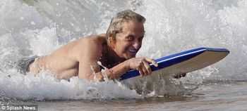 Michael Douglas chiar s-a aventurta un pic in apa si a incercat body boarding.