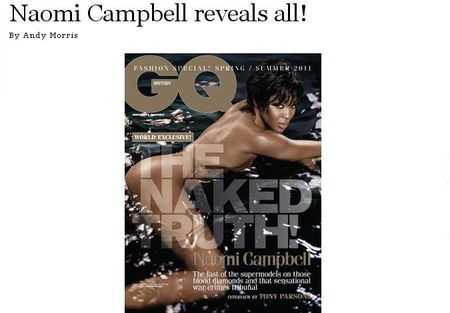 Pictorialul pentru revista GQ vine doar la o saptamana de cand Naomi Campbell a aparut in ipostaze sexy intr-o reclama TV pentru un complex de apartamente de lux din Moscova, detinut de iubitul ei, miliardarul rus Vladimir Doronin.