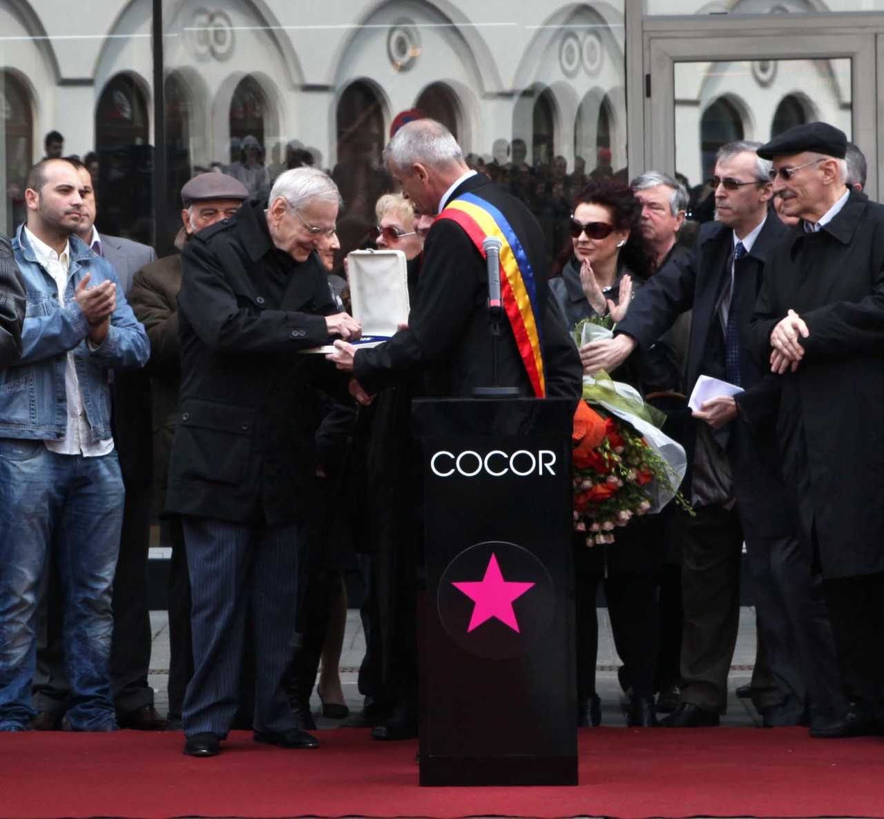 La inaugurarea stele lui Radu Beliga a fost present si primarul general al Capitalei, Sorin Oprescu, care i-a oferit actorului cheia orasului, o onoare care l-a coplesit pe longevivul artist.