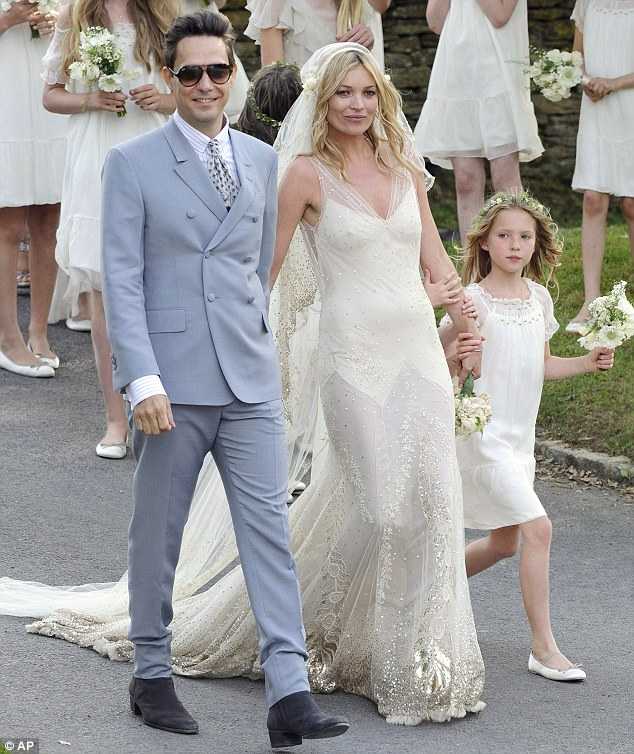 Moss a avut 14 domnisoare de onoare, printre care si fiica ei de opt ani Lila Grace.