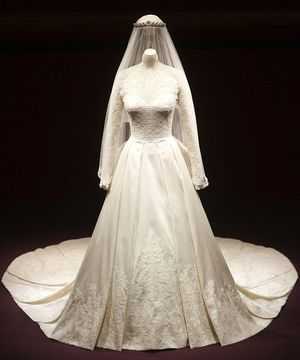 Rochia purtata de Kate Middleton, al carei secret a fost pastrat pana in ultimul moment, a fost dezvaluita lumii intregi abia in clipa in care mireasa a coborat din automobilul Rolls-Royce Phantom cu care a sosit la catedrala Westminster, unde a fost oficiata casatoria. Rochia a trezit admiratia publicului dar si a designerilor unor case de moda celebre.