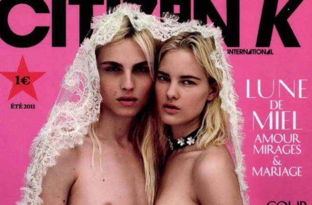 Langa fotomodelul Hannah Holman se afla tanarul Andrej Pejic, probabil cel mai cunoscut fotomodel din lume la ora actuala, fiind si desemnat „cea mai frumoasa femeie”, desi este barbat.