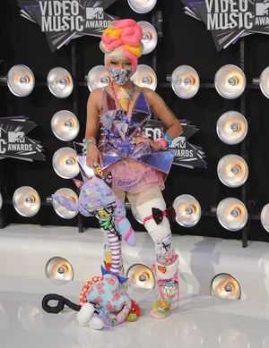 Nicki Minaj si-a facut aparitia pe covorul rosu intr-o tinuta greu de explicat: un corset Amato Couture asortat cu sosete colorate, jucarii si o botnita. Nu stim daca a uitat sa-si dea jos pijamalele si si-a pus pe deasupra corsetul sau a avut ea o logica ascunsa in alegerea acestei tinute.