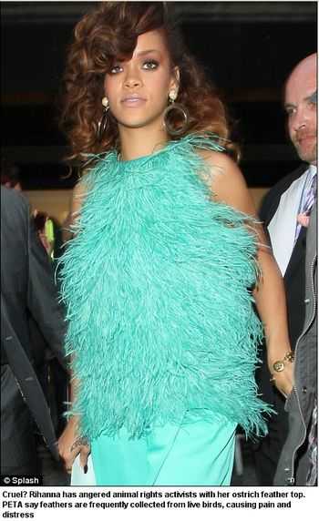 “Rihanna se etaleaza in bunuri furate, in acest caz, eventual, pene smulse de pe spinarea proprietarilor lor de drept”, a declarat Sandra Smiley, purtatoarea de cuvant a organizatiei PETA.