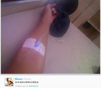 Rihanna, in varsta de 23 de ani, a fost internata intr-un spital suedez de unde a transmis fanilor ei un mesaj in care isi exprima regretul pentru ca nu a mai putut sustine concertul din Malmo.