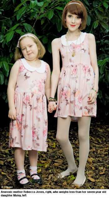 Dupa ce a suferit de anorexie mai bine de jumatate din viata, Rebecca Jones, in varsta de 26 de ani, a ajuns sa cantareasca putin peste 30 de kg, adica mai putin decat fiica ei, Maisy, in varsta de 7 ani.
