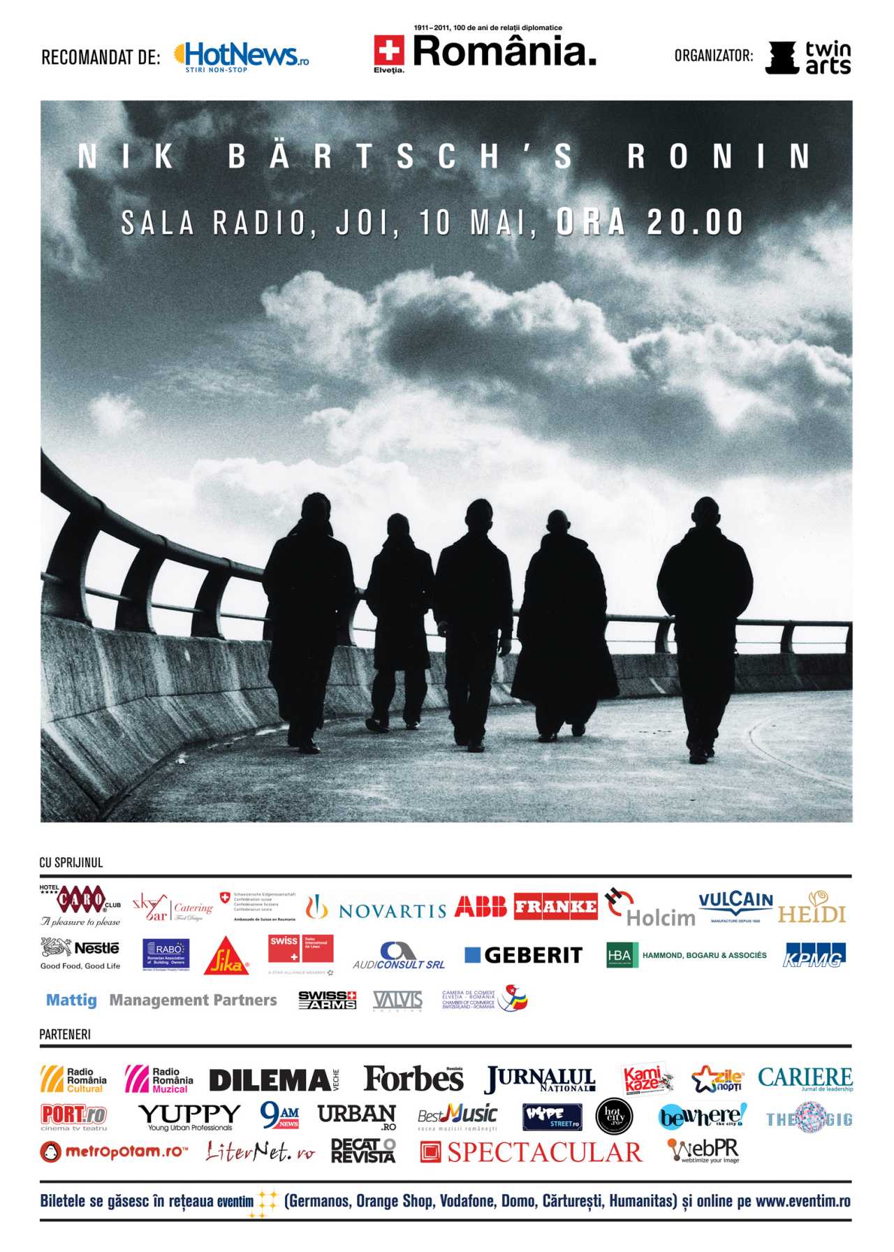 Pe 10 mai 2012, ora 20.00, pe scena de la Sala Radio din Bucuresti ii veti putea asculta pe Nik Bärtsch (pian), Kaspar Rast (tobe), Thomy Jordi (bas), Andi Pupato (percutii), Sha (saxofon, clarinet).