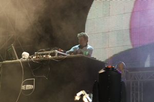 O atmosfera impresionanta a creat insa, in a doua seara de Dance Weekend, Fatboy Slim, aflat pentru a doua oara in Romania. Mii de oameni dansau , ovationau, fredonau cele mai cunoscute productii ale lui Fatboy, si lasau impresia ca in acel moment si in acel loc, nimic nu mai conteaza, decat muzica, dansul si euforia. “Right Here, Right Now!”, striga marea de oameni intrata in transa pe mixurile reggae, hip-hop, break beat si techno, iar proiectiile video de calitate au dat si mai multa greutate acestui show unic. La final, cei prezenti au scandat numele artistului de parca si-ar fi dorit ca vraja sa nu se mai termine.