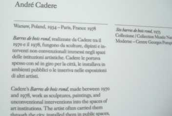 "Mai recent, insa, atunci cand aceeasi colectie permanenta a fost reamenajata, mai multe bare de lemn rotund ale lui Cadere au fost semanate ici-colo, pe tot parcursul noii expuneri, devenind un leit-motiv, ca un diapazon secret ce da tonul, ideea artei contemporane. Notita biografica era acum adecvata, desemnandu-l drept artist francez de origine romana, nascut la Varsovia si mort la Paris". Rectificarea nu a fost facuta insa si la Bienala de Arta Contemporana de la Venetia, cea mai mare expozitie a artei contemporane.