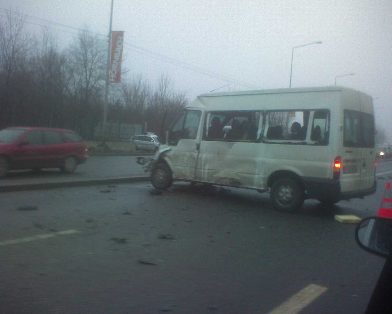 Soferul unei Dacii break a pierdut controlul asupra masinii si a intrat in coliziune cu un microbuz. Victimele au ajuns la spital cu contuzii, patru la Elias si una la Floreasca.