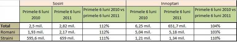 - Innoptarile au insumat 6,517 milioane, in crestere cu 4,2% fata de cele din semestrul I 2010. Innoptarile turistilor romani au reprezentat 79,5% din numarul total.