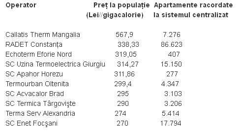 Tarife mai mari de 300 de lei/gigacalorie platesc si locuitorii din Girugiu si cei din Horezu. Ca termen de comparatie, bucurestenii sunt facturati cu 169,88 de lei pe gigacalorie.