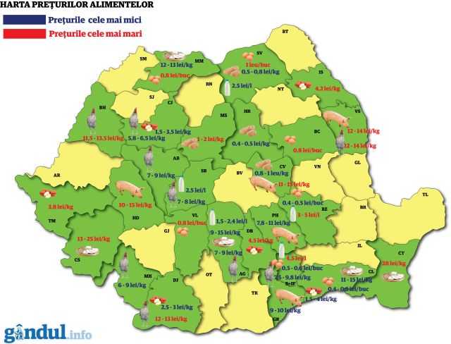 Harta preturilor de alimente din tara, actualizate in functie de cele mai recente date de la Ministerul Agriculturii