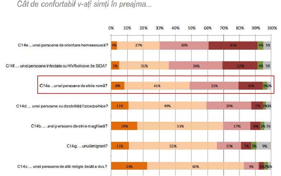 46% dintre respondentii sondajui realizat in primavara acestui an au declarat ca s-ar simti „putin” sau „deloc confortabil” in prezenta unei persoane de etnie roma.