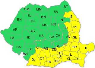 In aceste regiuni se vor inregistra frecvent temperaturi maxime de 35...38 de grade si pe arii restranse, cu precadere in Baragan si Lunca Dunarii, 39 de grade. Indicele temperatura-umezeala (ITU) va atinge si local va depasi pragul critic de 80.