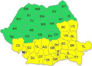 Cod Galben pentru intervalul 25 ianuarie ora 08 – 25 ianuarie ora 20