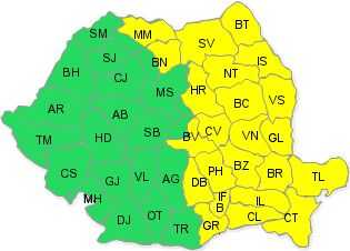 Cod Galben pentru intervalul 24 ianuarie ora 18 – 25 ianuarie ora 08