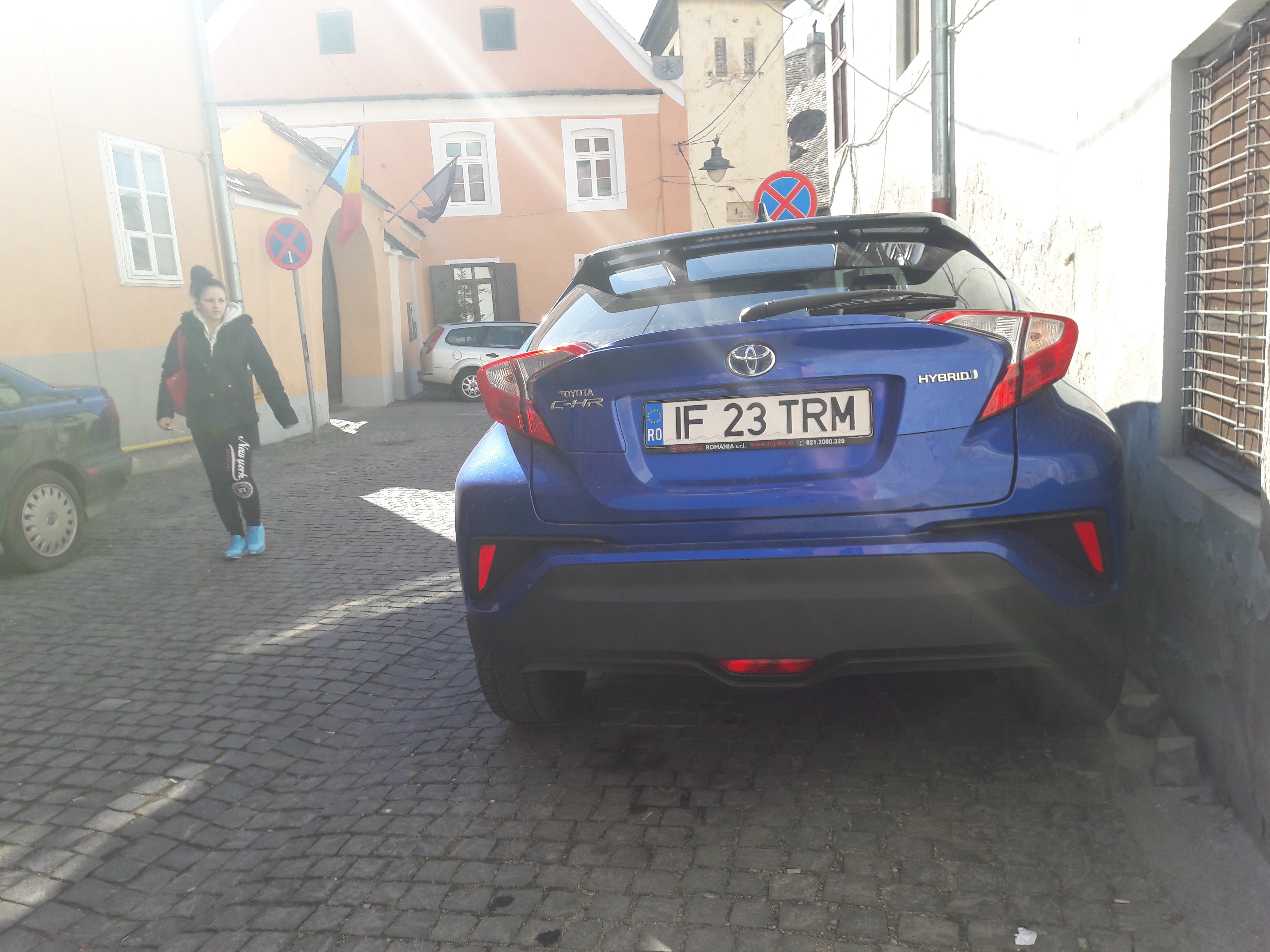 Bucuresti e deja cunoscut pentru nervii pe care-i cauzeaza zilnic soferilor si suntem obisnuiti deja cu ideea ca infrastructura noastra rutiera lasa de dorit, insa in Pitesti, Ramnicu Valcea si Sibiu masina n-a dat niciodata semn ca s-ar incurca in vreo situatie. Avand in vedere marimea, dar si vizibilitatea buna pe care o ofera pentru un crossover, mi-a fost usor sa ajung la destinatie.Al treilea test cu Toyota C-HR. Parcarea