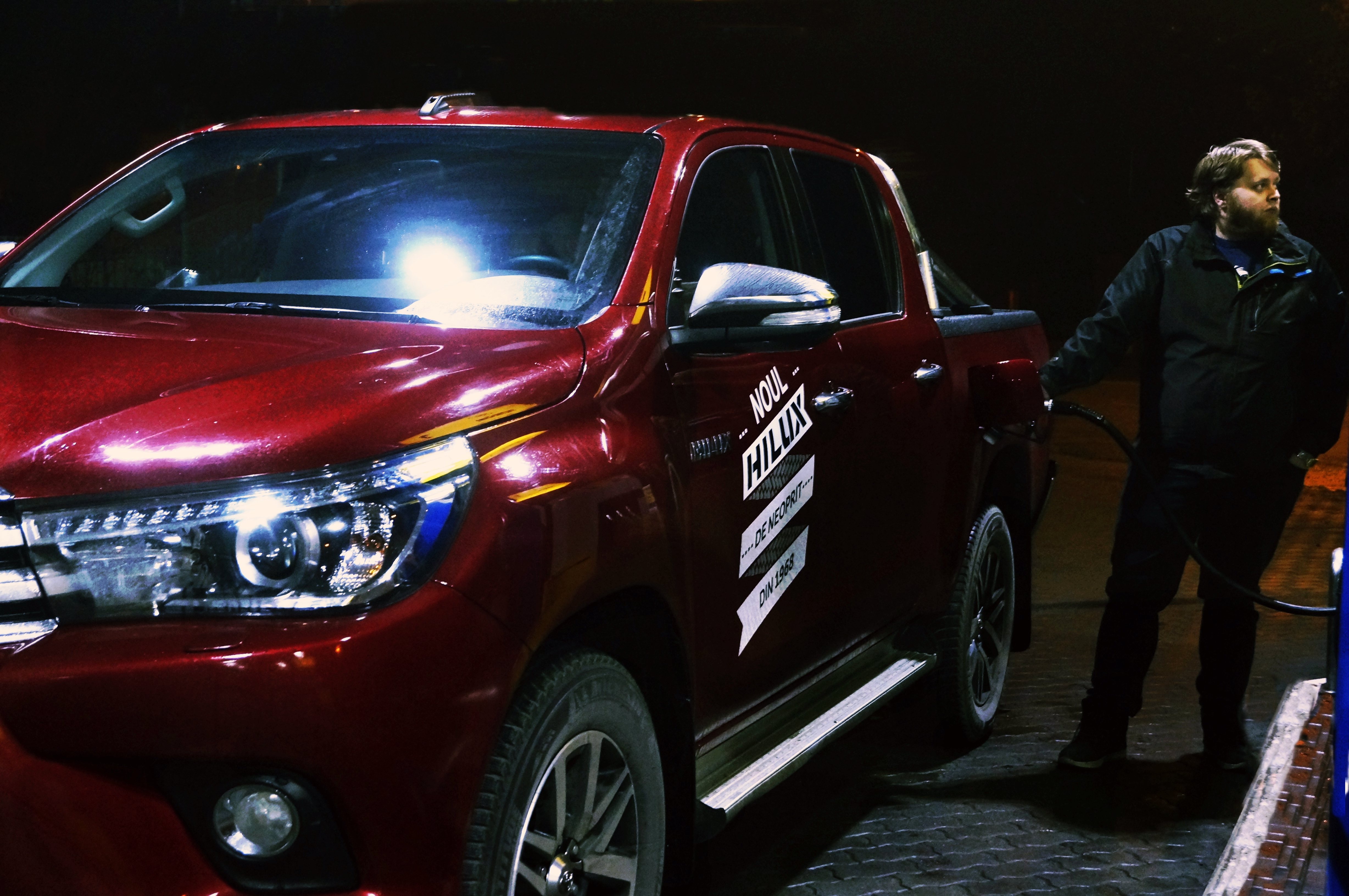 Avand in vedere ca am avut Hilux cateva zile pe mana, am zis ca e important sa scot masina din Capitala si sa merg spre provincie. Natural, prima orpire a fost intr-o benzinarie, unde i-am dat sa manance un pic. Are si ea nevoie de energie ca sa ne duca la destinatie.