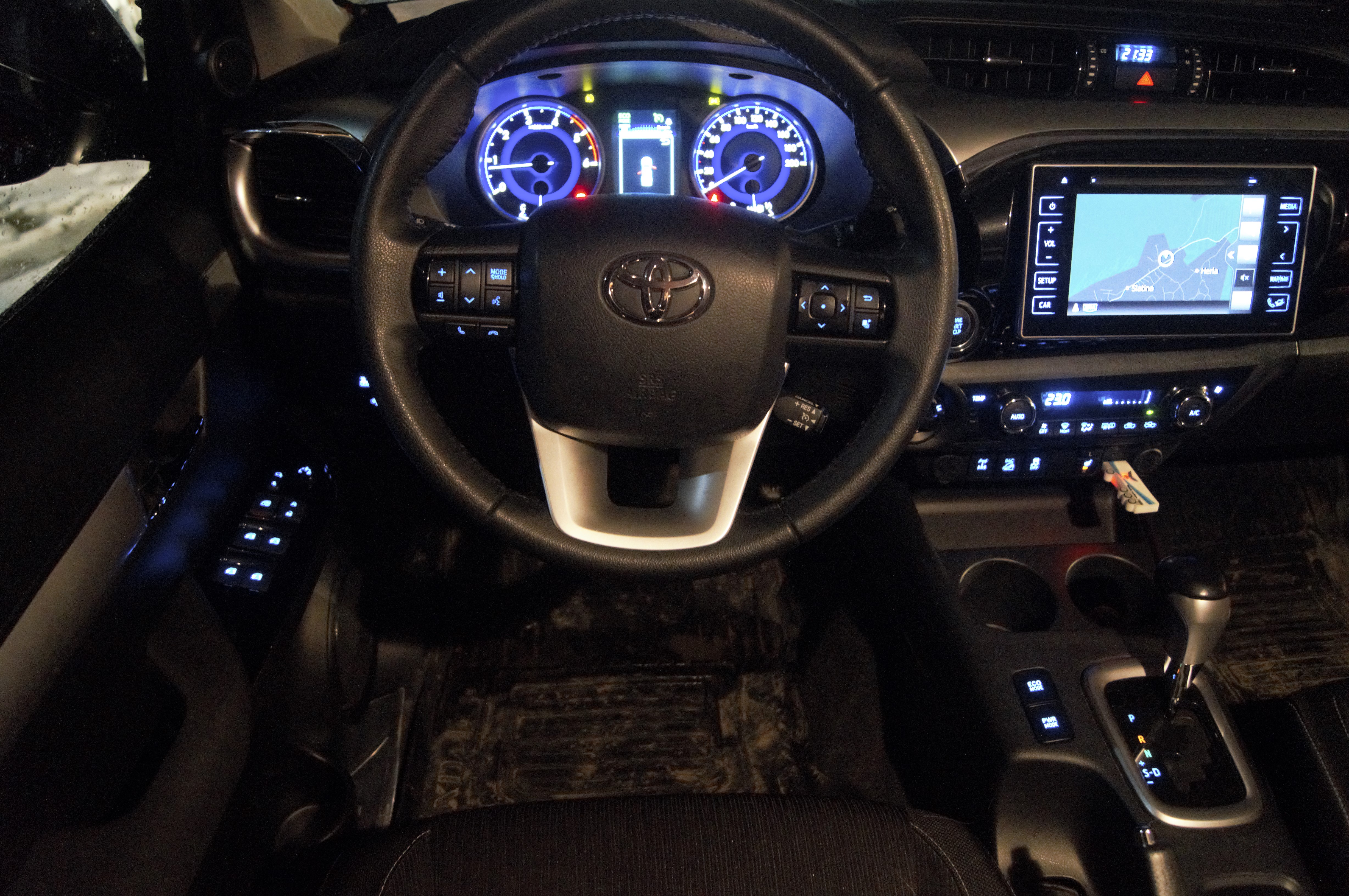 Cam asta te primeste in momentul in care urci la volanului noului Hilux, dupa cum puteti vedea in imaginea de mai sus. Probabil daca ai vedea doar fotografia asta si nimic altceva legat de caroserie, cu siguranta primul gand n-ar fi despre un pick-up.