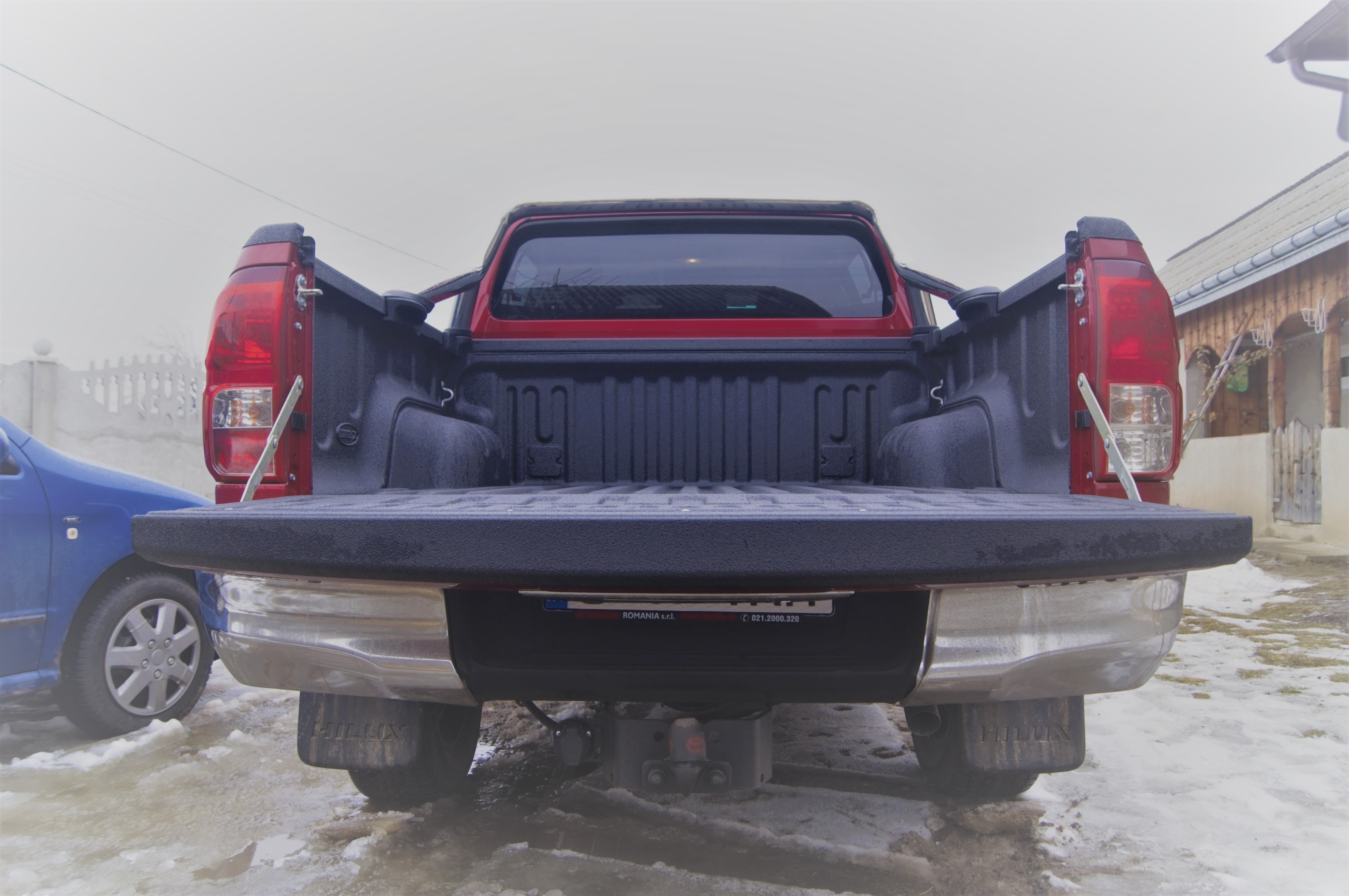 Stiti ca nu sunt neaparat adeptul prezentarii a mai multor date tehnice pe care oricum le veti afla de la reprezentantul Toyota sau de pe site-urile oficiale ale constructorului, insa e bine sa precizam pentru cei care ar vrea sa afle cateva detalii de aici ca avem de-a face cu un motor de 2,4 litri diesel de 150 de cai putere si o cutie automata in 6 trepte. Daca nu va place neaparat automata, atunci puteti alege si cutia manuala, insa eu nu as face aceasta miscare. Cutia automata este configurata foarte bine si raspunde asa cum iti doresti si te astepti de la o Toyota din 2016. O tona poate fi incarcata in bena, iar 3,2 tone pot fi tractate. Masina masoara 5,33 de metri in lungime, 1,85 de metri in latime si 1,81 metri inaltime.