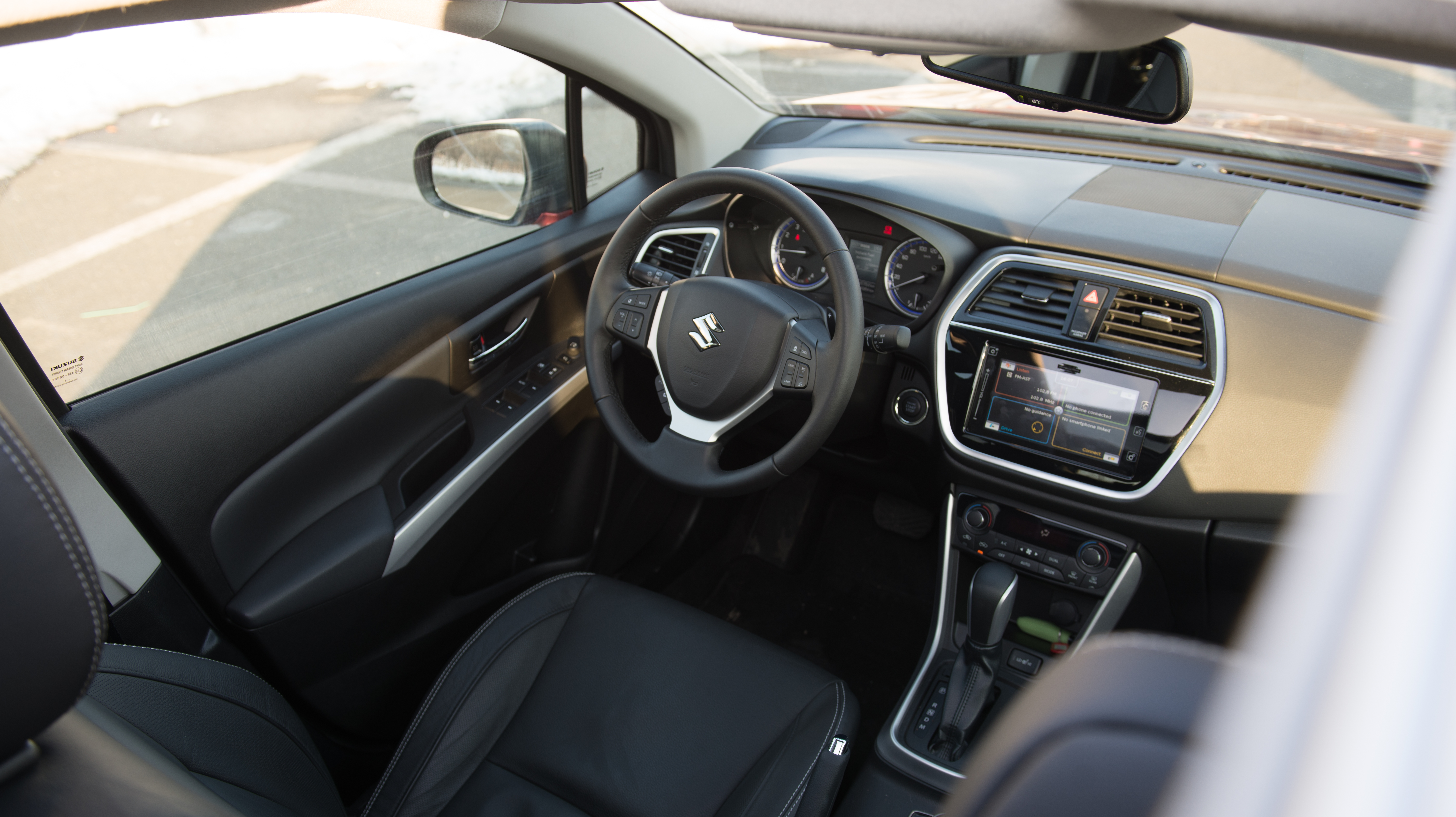 La interior m-am bucurat de o piele de foarte buna calitate, o cutie automata care schimba foarte bine si este responsiva atunci cand ai nevoie de un plus de putere (kickdown) si de o consola centrala cu touch (de la care eu n-aveam asteptari) ce s-a descurcat absolut impecabil. Un punct in plus aici pentru Suzuki SX4.