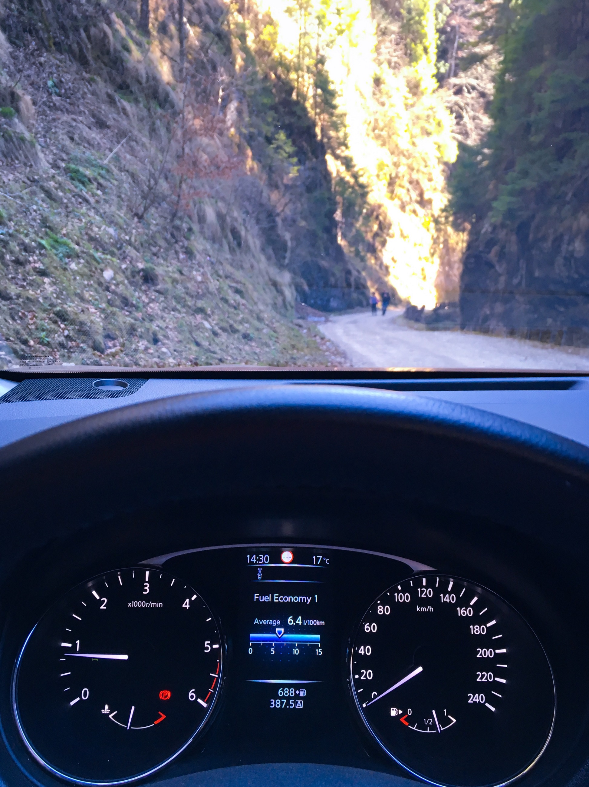 Da, mi-a placut mult. Masina practic iti devine un aliat si vei avea parte de drumuri linistite si confortabile pentru ca suspensiile sunt silentioase si lucreaza excelent atat in oras, cat si la viteze mari. Aici ajuta si directia usoara care se pliaza imediat dupa tine si se adapteaza usor indiferent de cum ai conduce sau pe ce teren te-ai afla pentru ca pe noul X-Trail avem si 4x4. Acest sistem este o mandrie pentru Nissan, intrucat este adaptabil automat la conditiile de drum, asa ca poti accesa si zone care par mai dificile. Deci, Nissan X-Trail nu este doar o masina pentru a-ti duce copiii la scoala.Traseul ales de mine a fost ales in asa fel incat sa pot ajunge aproape in orice situatie cu aceasta masina. Daca in Bucuresti m-am descurcat onorabil cu parcarea si cu strecuratul pe benzile mai rapide din trafic, situatia devine mult mai fericita atunci cand iesi din oras.