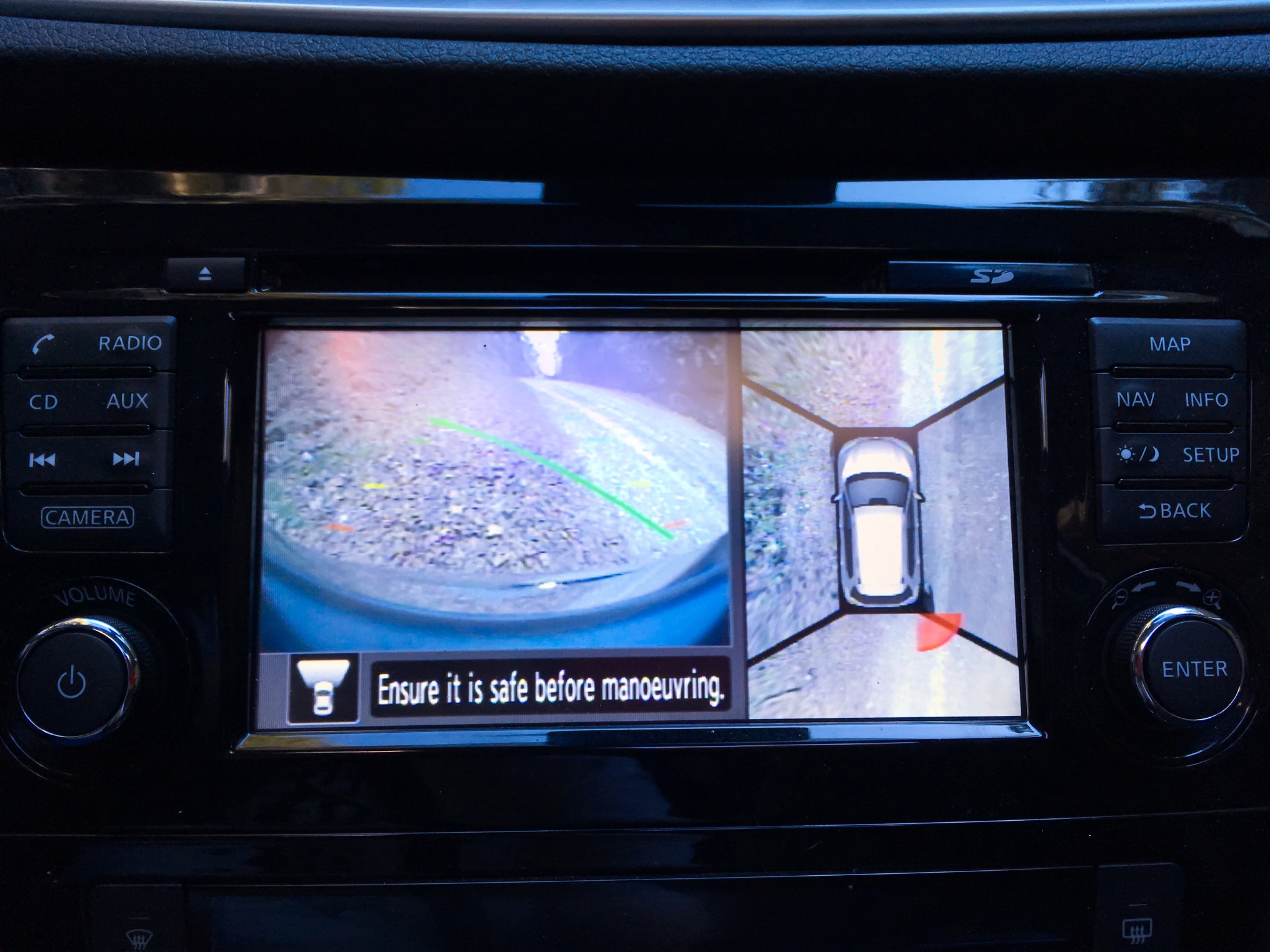 Camera pentru marsarier vede bine si, in mod surprinzator, avem si posibilitatea de a vizualiza masina la 360 de grade datorita multiplelor camere amplasate pe Nissan X-Trail.