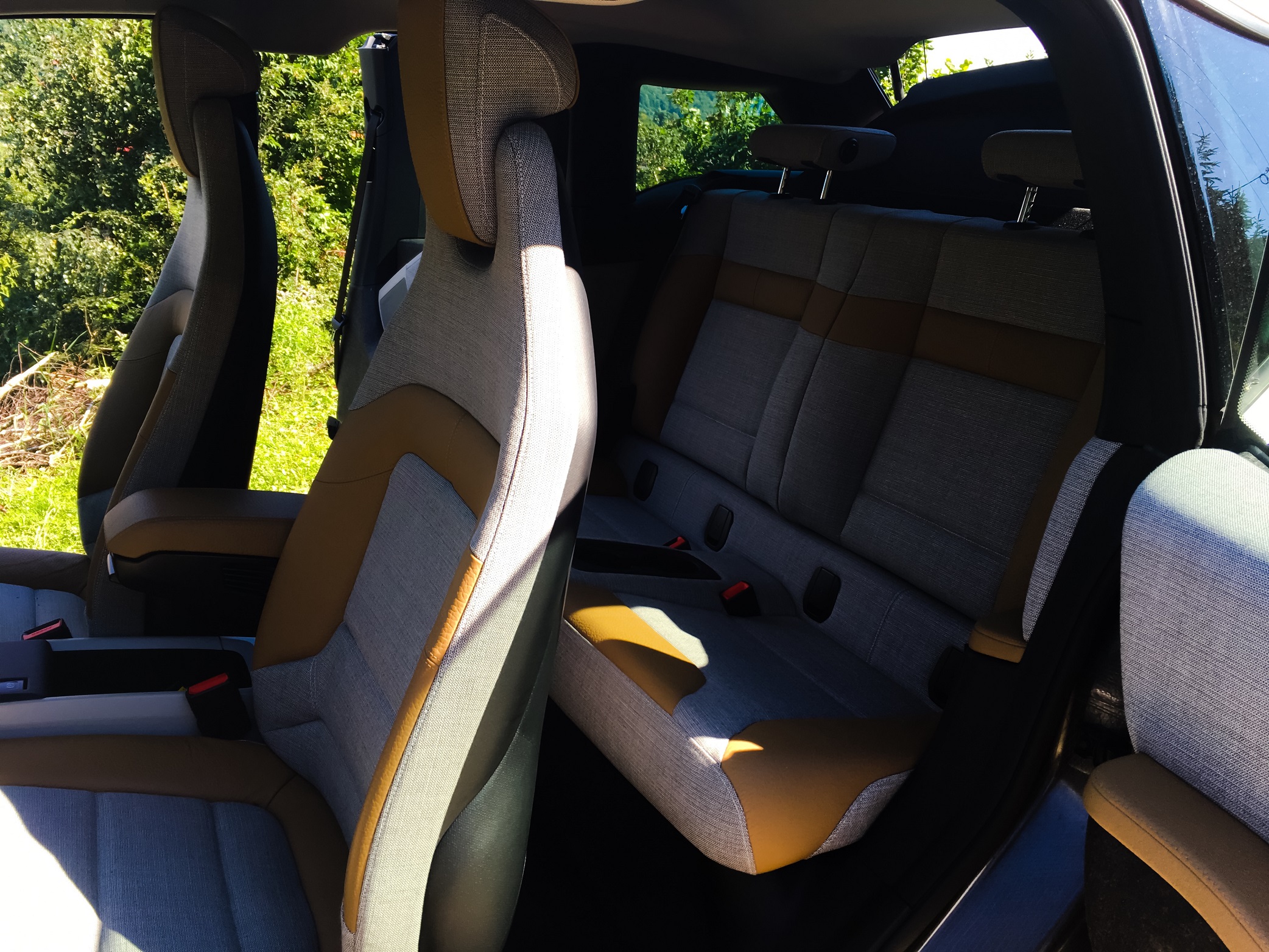 Pasagerii au loc berechet in spate, iar i3 poate duce in confort 4 oameni la destinatie. Ce e interesant aici e ca poti folosi usile (suicide doors, in stil Rolls Royce) care intriga trecatorii pentru un acces facil in spate sau poti sa procedezi exact ca la un coupe cu 2 usi si doar sa muti spatarul scaunului din fata.