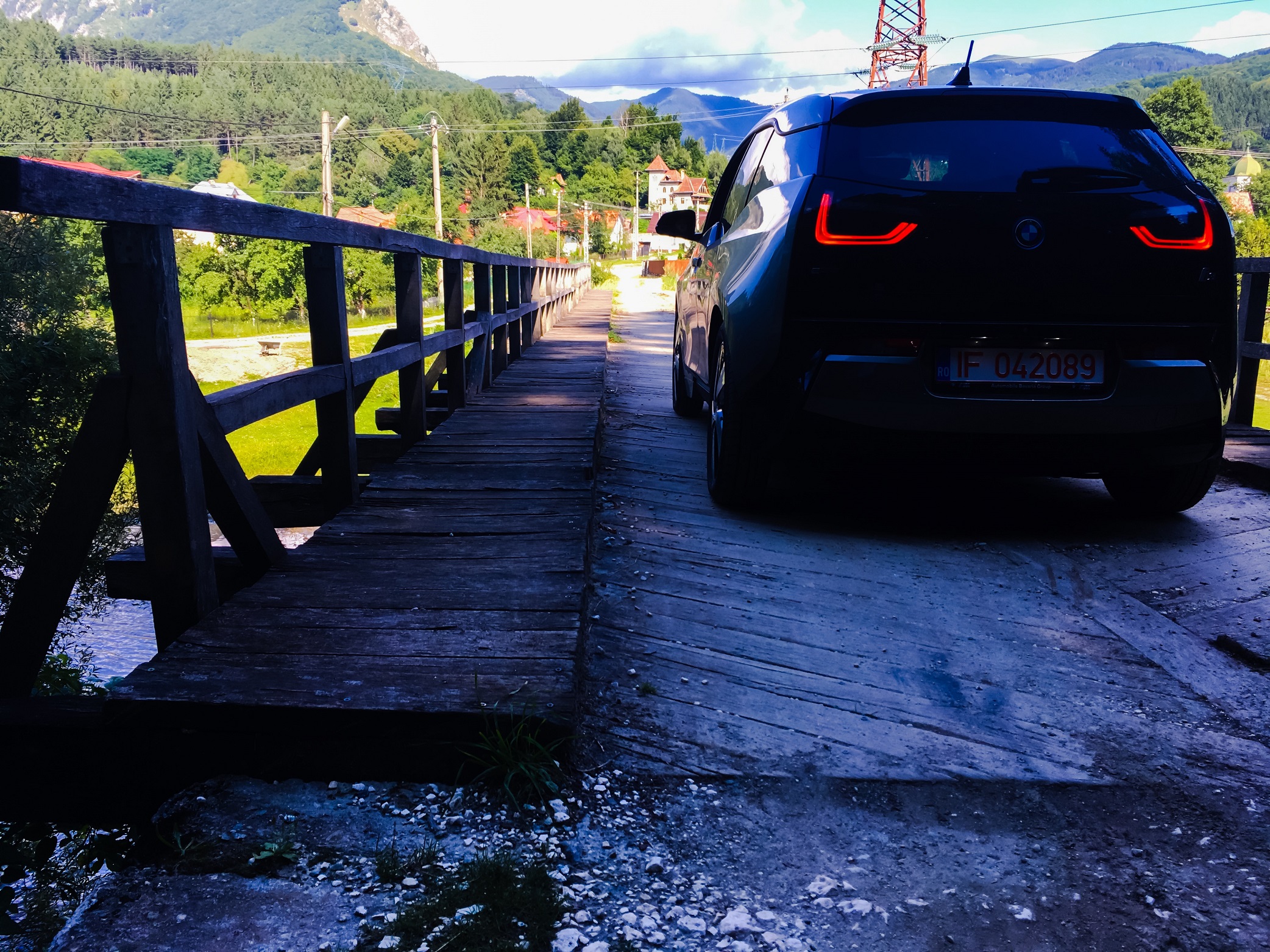 Mi-am continuat linistit apoi drumul spre Rucar, unde am ajuns cu peste 60% de energie ramasa in baterie. A doua zi dis-de-dimineata mi-am intrebat gazdele daca pot sa imi incarc masina la o priza. Dupa ce s-au uitat un pic nedumeriti la mine, m-au indrumat catre un loc in care am pus i3-ul sa mai castige un pic de autonomie.