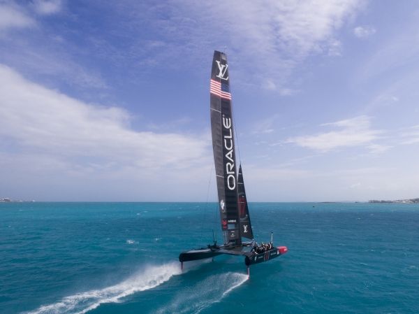 Italianul a experimentat "zborul pe apa" al iahtului "17" de clasa "AC-50" al OTUSA, participand la o sesiune de antrenament la viteza maxima in proximitatea coastelor Bermudei.